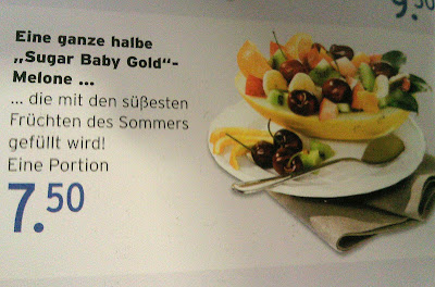 Supermarkts verspricht jedenfalls ganze oder doch etwa halbe Melonen (Der Name der Melonensorte wäre im übrigen ebenfalls eine Diskussion wert):